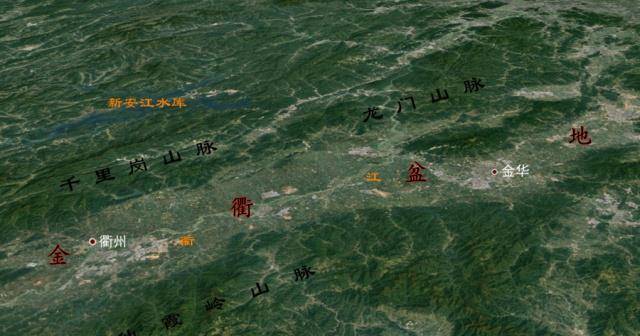 “金衢盆地”顾名思义,就是金华市和衢州市所在的盆地。该盆地是浙江省最大盆地,东西长约220公里,南北宽约25公里,面积达4700平方公里,相当于上海市的陆地面积(不包含岛屿)总和。