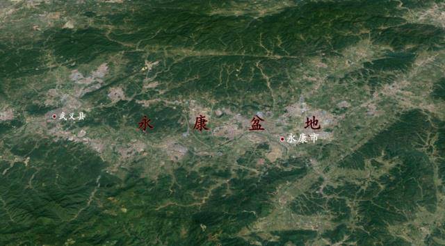 永康盆地地处浙江省中部地区,与金衢盆地隔山相望,因盆地内的永康市而得名。永康平原地形不太规则,南北宽约为13公里,东西长约60公里,总面积约为800平方公里,盆地两侧多山丘,但大部分地区地势平坦。