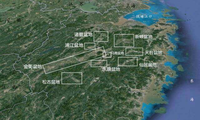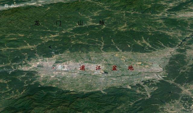 浦江盆地位于金衢盆地东北部,盆地内部呈现规则的边缘,地势平坦,但面积较小,长20公里,宽10公里左右,大约为200平方公里,因为盆地内流过的浦江以及浦江县而得名。