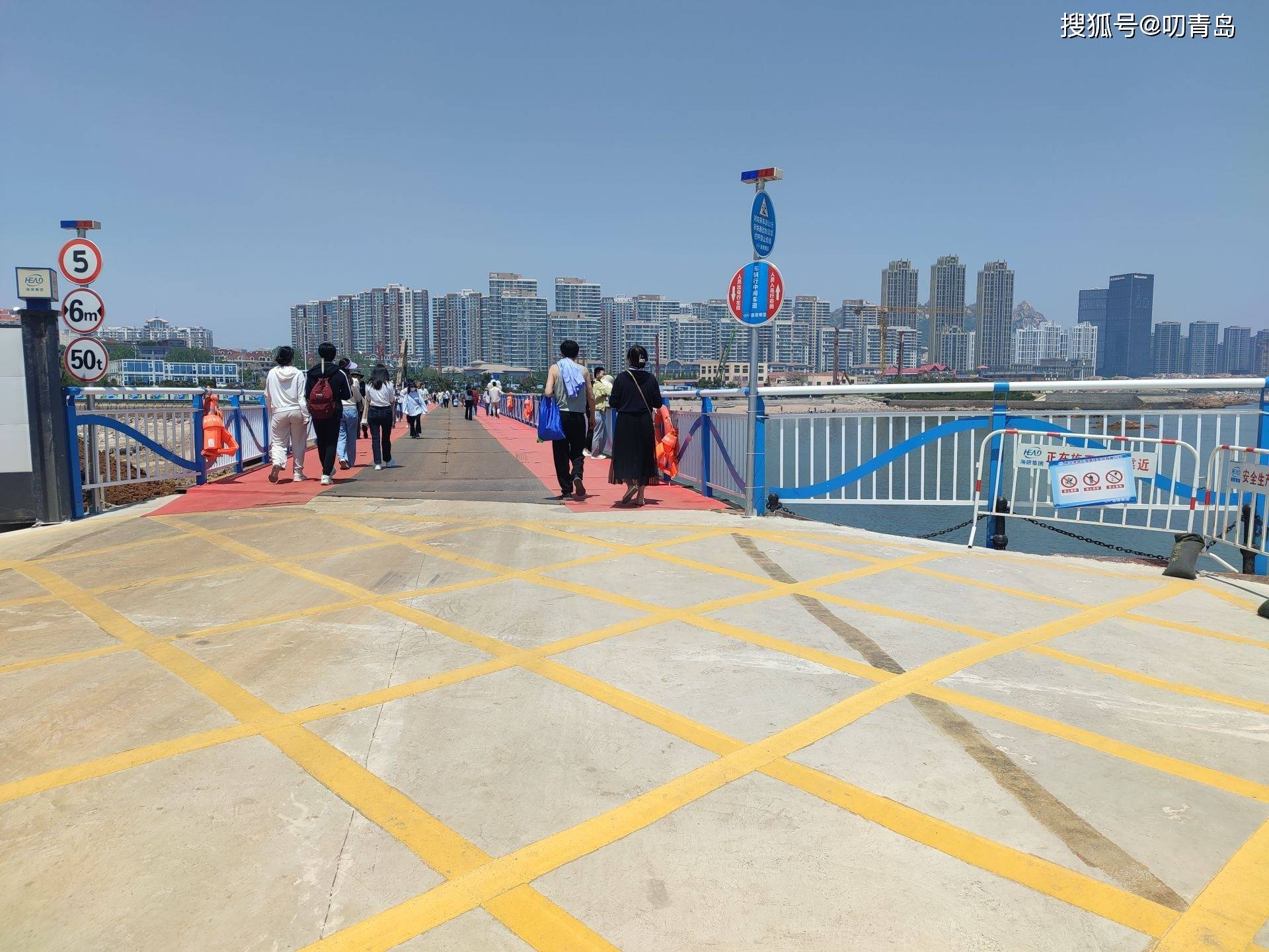 老桥东侧新建的一条临时的钢便桥,方便市民和游客在施工期间进岛游玩。
