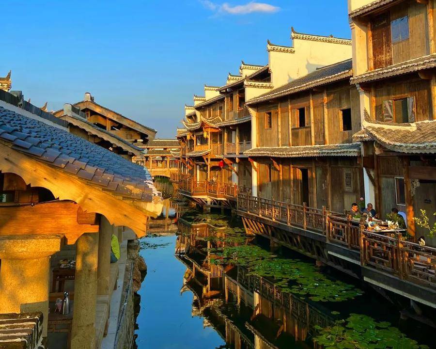观唐温水乡民俗文化园,以弘扬中华优秀传统文化主导,异地迁建修复118栋明清古宅院落,辅以水系环绕,将“青砖黑瓦马头墙,回廊挂落花格窗”的水乡江南,整体复原到千年温泉古镇—汤头。温水乡内,石板路面,古渡老桥,融合忠孝文化、功名文化等多种元素,打造集古建筑文化展示、沉浸式水乡体验,非遗文化展演、古民居民宿微度假于一体的文化旅游休闲区。
