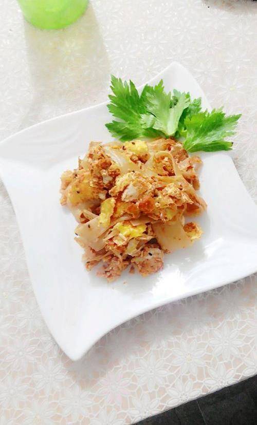 5、鸡蛋熟了后倒入番茄酱翻炒,放点醋提味!再放点十三香,关火,撒上孜然和黑芝麻即可