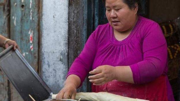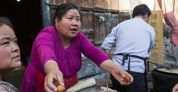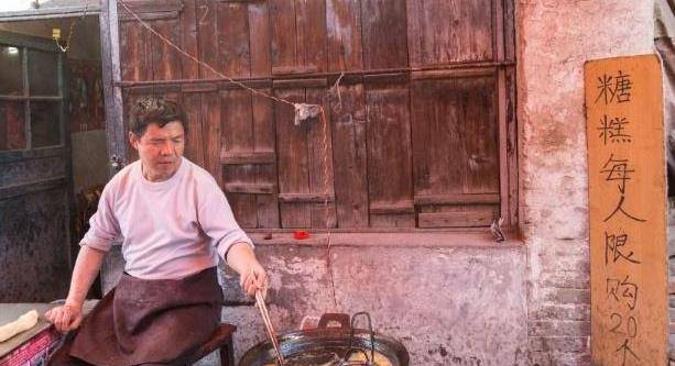 他家卖的是传统的小吃炸糖糕,地址就位于陕西西安秦镇老街的一个百年老屋里面。他家卖糖糕已经卖了40多年了,而且他家炸糖糕的方式一直是最简单的最原始的方式,每个过来买蛋糕的顾客都亲切的称老板娘为”胖大姐“,估计是因为她的身材比一般人要胖一些吧。