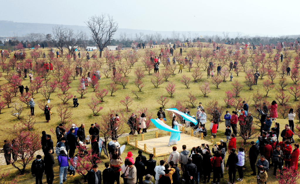 2月26日,游人在长安唐村梅园内赏梅(无人机照片)。新华社记者 刘潇 摄