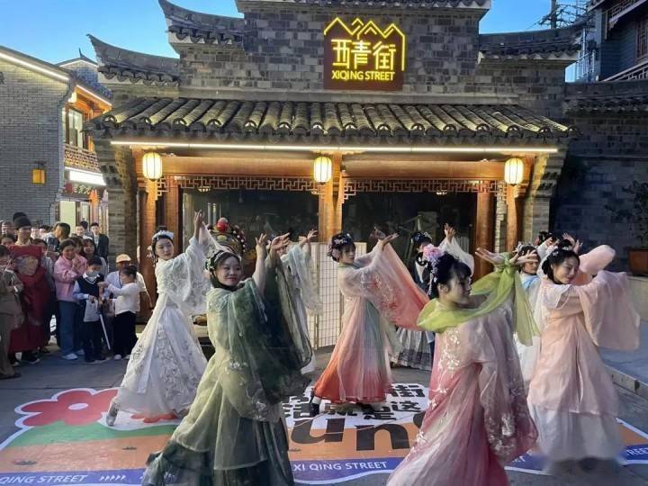 街区举办了非遗文化展示、网红市集,还安排了乐队歌舞表演、越剧演唱、汉服走秀、潮流街舞、网红玩偶互动、点茶古筝表演等互动节目,五一期间轮番上演,精彩纷呈。