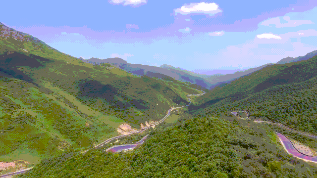 分水岭盘山公路蜿蜒曲折,车辆在崇山峻岭中盘旋俯仰,尽可领略这条公路的弯险盘旋。白雾飘浮其间,仿佛置身梦幻空间。