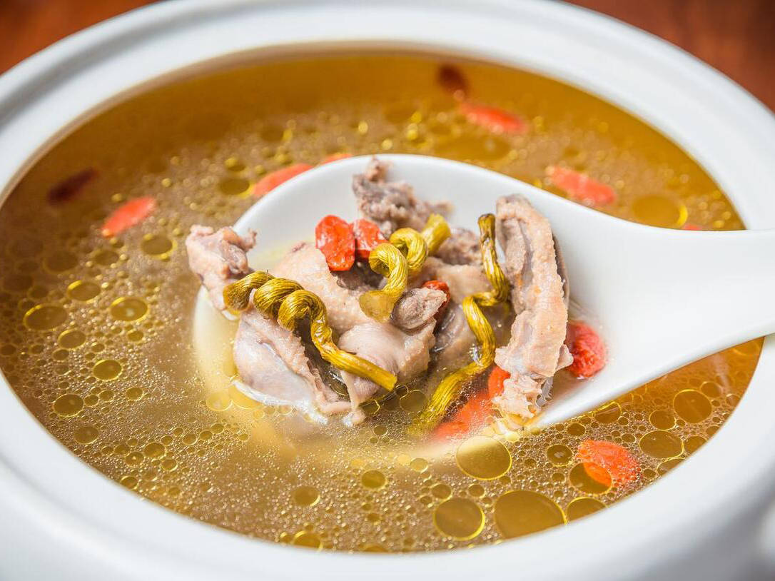 比如:春季养生靓汤:枸杞叶瘦肉煲鸡汤、蜜枣枸杞竹蔗猪骨汤、枸杞叶炖猪蹄、山药猪骨老姜炖甲鱼汤等;夏季养生靓汤:鲜贝绿豆乌鸡、花胶乌鸡煲、竹丝鸡、玉竹老鸭粥;秋季养生靓汤:淮山瘦肉煲猪肚汤、陈皮竹蔗水、芡实百合莲子粥等;冬季养生靓汤:花胶雪蛤鸽子汤等。
