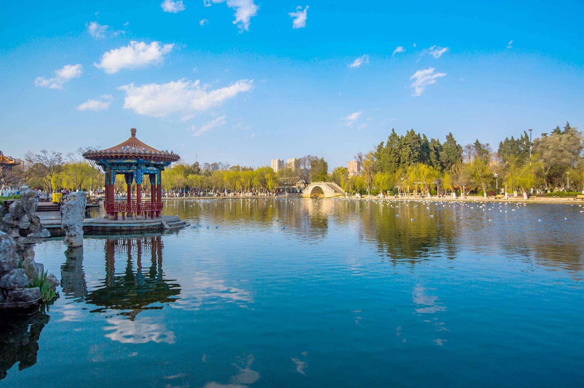 有人把大观楼公园称作昆明的后花园,这种说法倒是相当贴切,大观楼地处昆明市以西约3公里的滇池湖畔,和市区的距离不远不近刚刚好,既保持了市郊公园该有的清幽安静,也不会给人路途波折、佳人独立的疏远感。