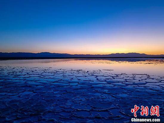 因是固液并存的卤水湖,天气晴好时,茶卡盐湖湖面就像镜子,堪比玻利维亚“天空之镜”,故享有中国版“天空之镜”美誉。图为清晨的茶卡盐湖。王生荣 摄