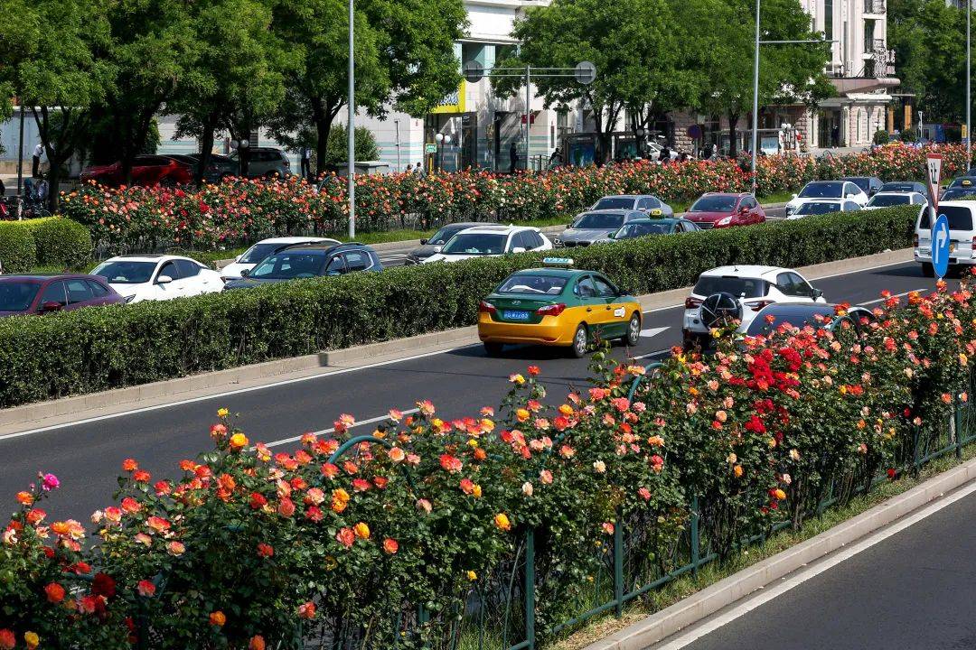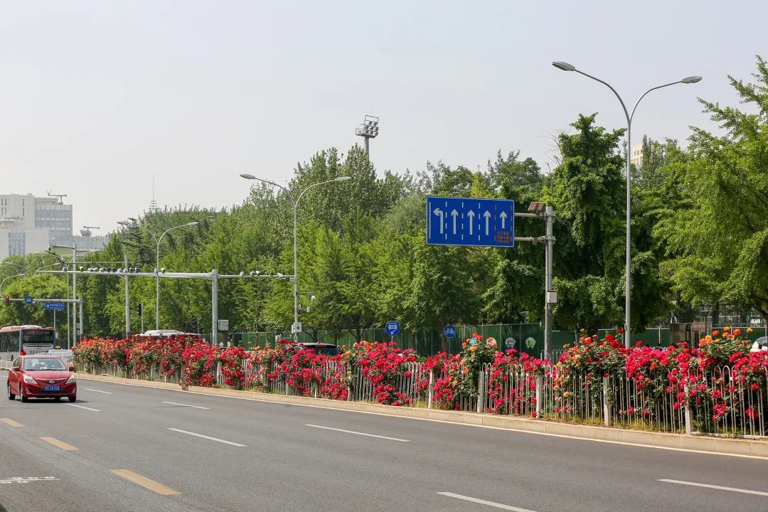 月季是北京市的市花,所以在北京城市园林绿化应用当中非常多,尤其现在在二环、三环、四环的环路上,正是月季盛开的时节,目前北京道路应用的月季已超过了300公里。