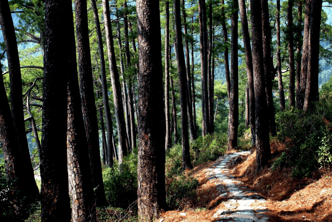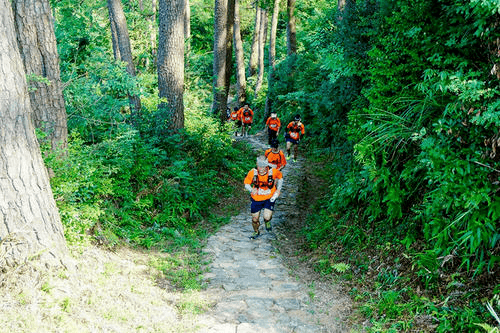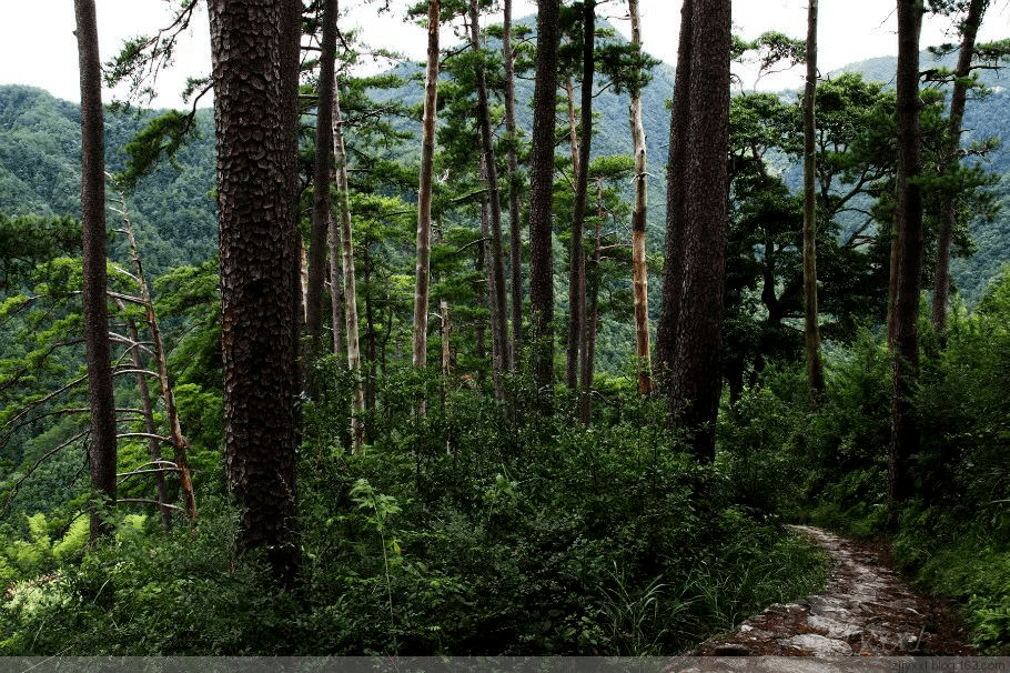 穿行在石块铺成的幽幽古道,身旁 数以千计的松树, 经岁月洗礼,傲然屹立、郁郁葱葱, 形成今日蔚为壮观的“五里古松长廊”。