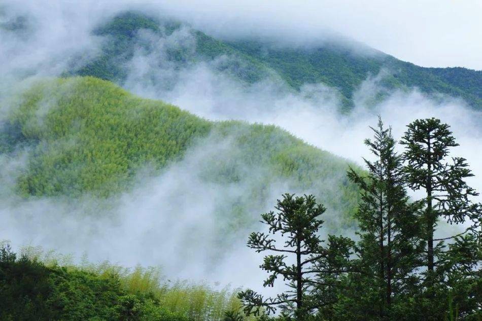 沿途云海、竹海、茶林, 穿行其中,与潺潺的小溪相遇,处处是美景,满眼是诗意。