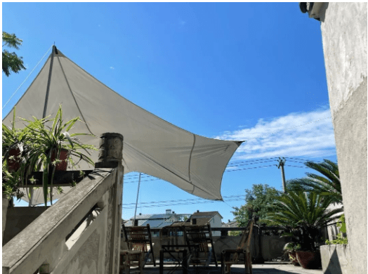 我们从咖啡喝到酒,坐在院子里有一搭没一搭地聊天,很快日头到了正中,门口几棵大大的银杏树被风吹落了叶子,掉在门口的水沟里,也飘了一些到院内,出门望去,银杏树也长在这条街别的人家门口。