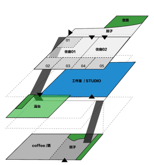 二楼分布着5个房间,是民宿,也提供给艺术家驻留。