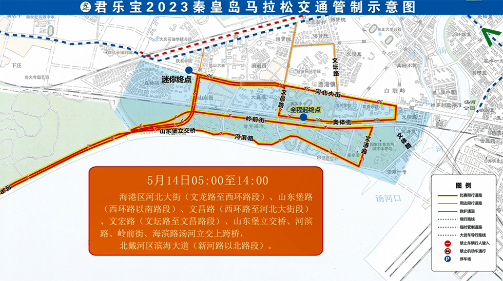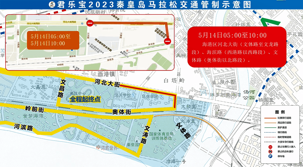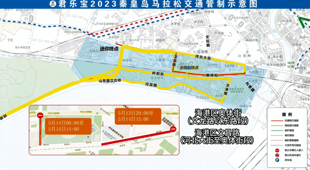 5月12日12时至5月14日15时:海港区奥体街(文昌路至文龙路段)。