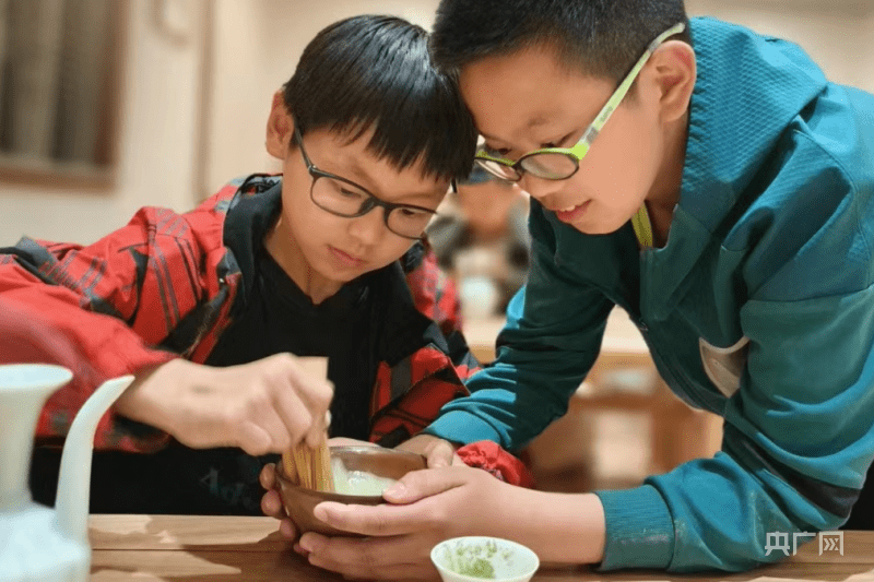 徽茶研学游火热—孩子们在学习点茶(央广网发 戴江勇摄)