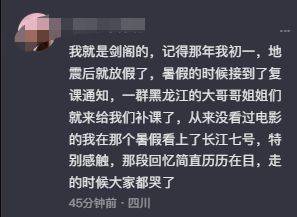 我就是剑阁的,记得那年我初一,地震后就放假了,暑假的时候接到了复课通知,一群黑龙江的大哥哥姐姐们就来给我们补课了,从来没看过电影的我在那个暑假看上了长江七号,特别感触,那段回忆简直历历在目,走的时候大家都哭了。