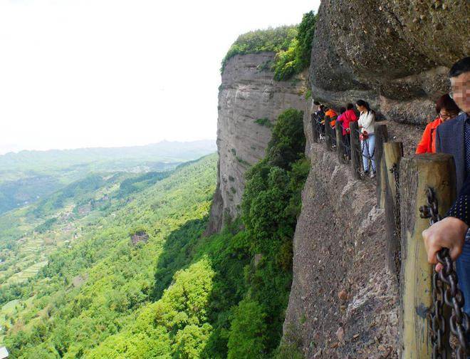 当然了,如果攀岩对你的挑战太大了的话,你也可以选择走鸟道上山,也是很刺激的,可以体验到“西当太白有鸟道”的乐趣,在上山途中你还能在手扶铁索之余,尽览脚边山崖下的风光。到达山顶后,你就可以在玻璃观景台上欣赏到剑门关的壮美风景了。如果,你体力不好不想爬山,也可以选择坐索道或交通车直达山顶,很是方便。不过,个人建议有机会还是要去鸟道体验下,非常值得游览,感觉比华山栈道还吓人。