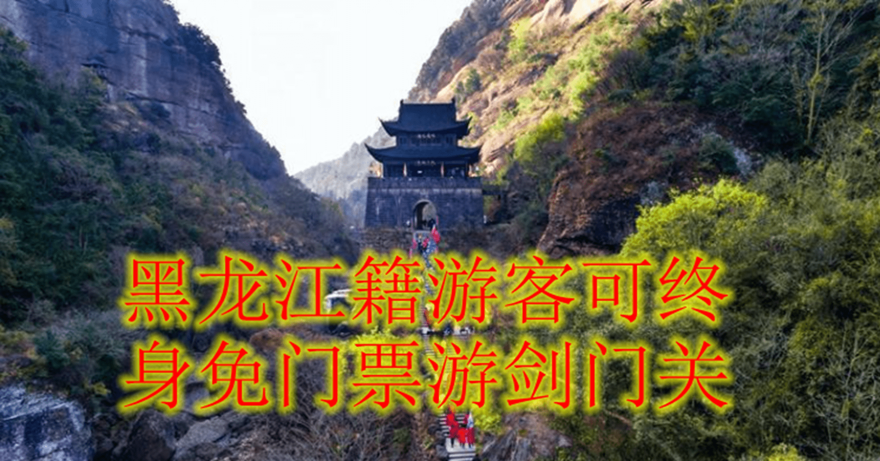 如果你看过剑门关景区导游全景图,你会发现个有意思的地方。剑门关景区除了对现役军人、残疾人、70岁以上老年人免票之外,另外就是“黑龙江游客凭个人有效证件免费景区景区”,意思就是说,在剑门关景区,黑龙江籍的游客可免费玩。