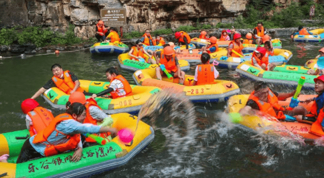 景区的高山峡谷漂流,坐落在北京西面的雄伟山脉——太行山脉天子峰下的大峡谷中。漂流河道沿自然峡谷激流直下,全长约3.8公里,全程落差高达180米,全程布满大小湖泊,拥有300多个极速叠差。除此之外,景区还有很多好玩的体验项目,如星空漫步、时光穿梭、碰碰车等,非常适合三五好友和亲子家庭集体游玩。