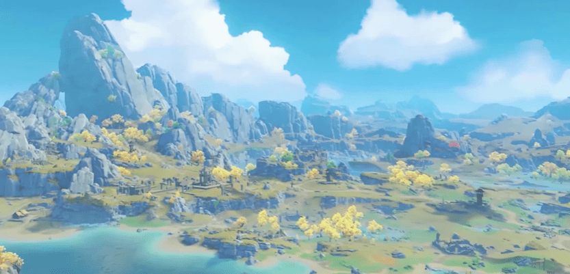 原来这位网友说的是热门游戏《原神》中璃月的景点,熟悉这款游戏的玩家都知道,璃月这张地图上的建筑有古代中国的特色,广袤的河山似乎也能跟我国的山水对应上,于是不少玩家都将璃月当作是中国在游戏中的写照。