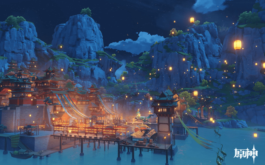 除了建筑、山水能看到中国的影子外,还有一个最大的原因就是璃月的风俗。璃月的逐月节、海灯节,有赏月、放霄灯的习俗,这与传统节日中秋节、元宵节有异曲同工之处,此外还有戏曲、美食,都让人有一种代入感。
