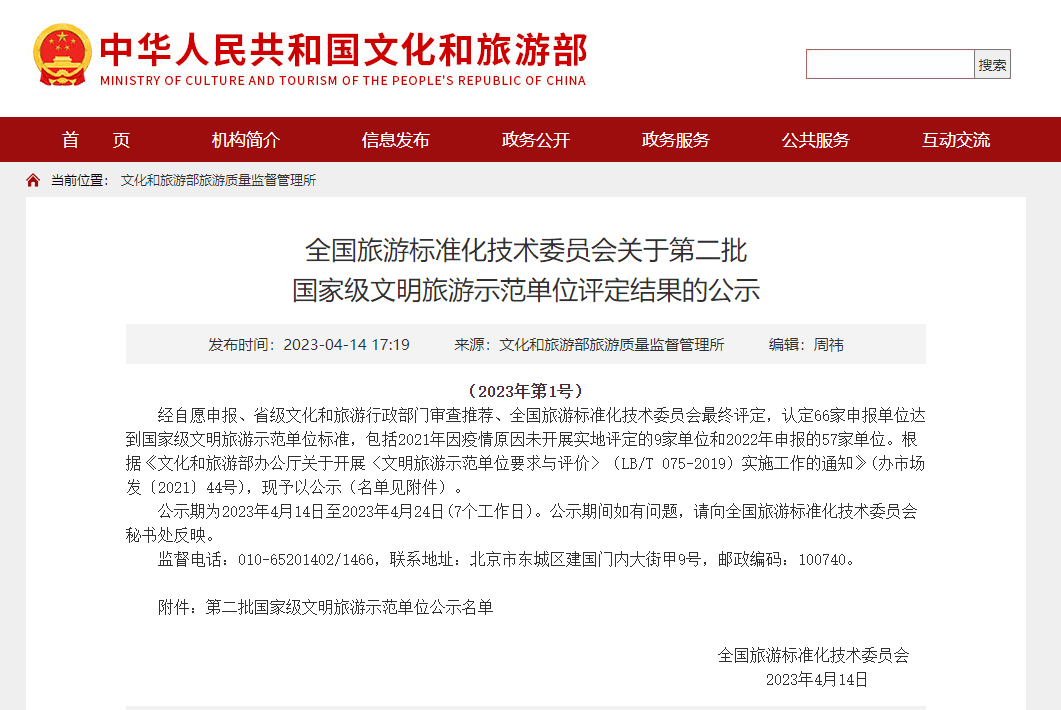 5月8日,文化和旅游部公布66家单位为第二批国家级文明旅游示范单位。其中,襄阳古隆中景区上榜。