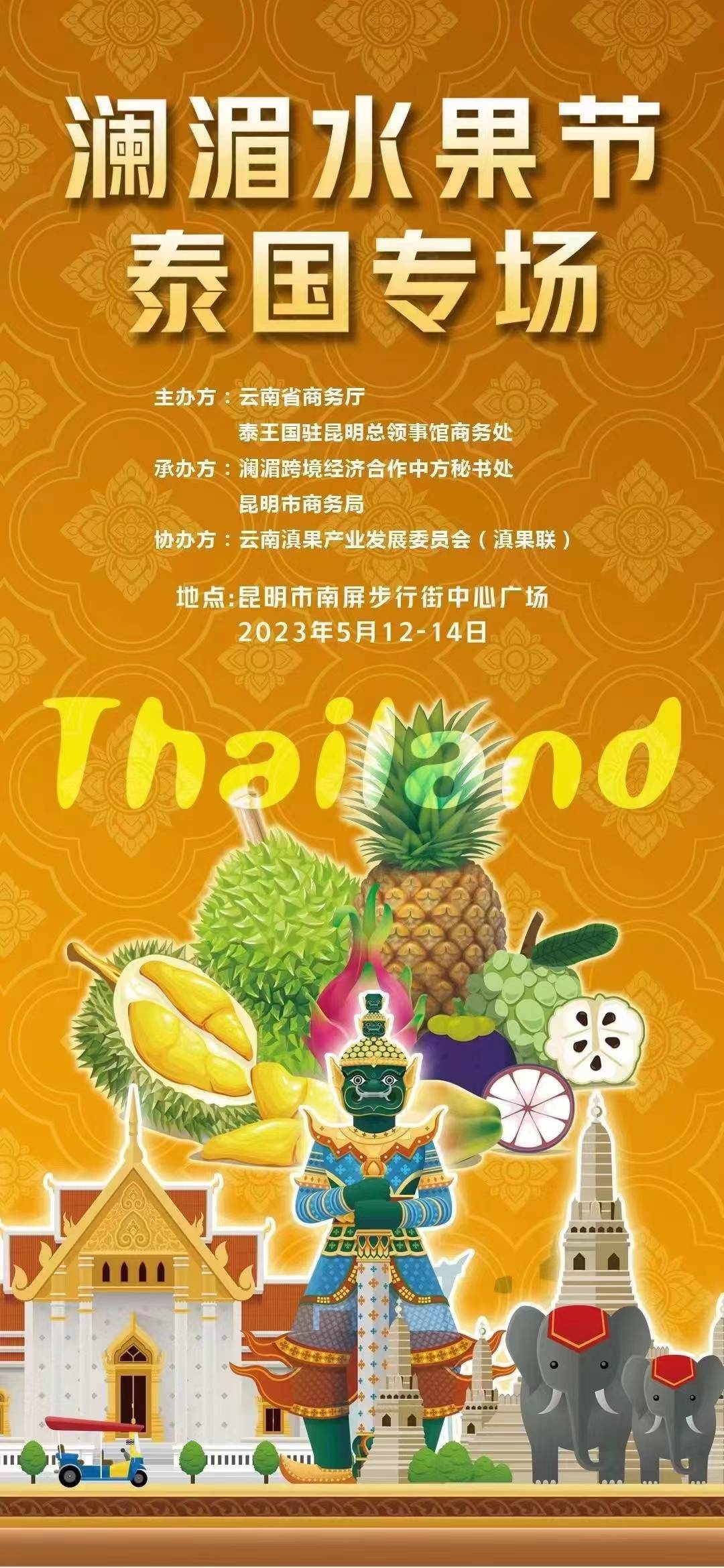 5月12日下午,由云南省商务厅、泰王国驻昆总领馆商务处联合主办的“澜湄水果节·泰国专场”活动在南屏步行街中央广场正式启动。