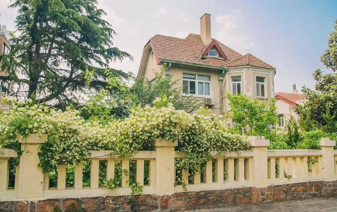 如今的八大关满是初夏的浪漫,荣成路和武胜关路交叉口的木香花瀑美到出圈。