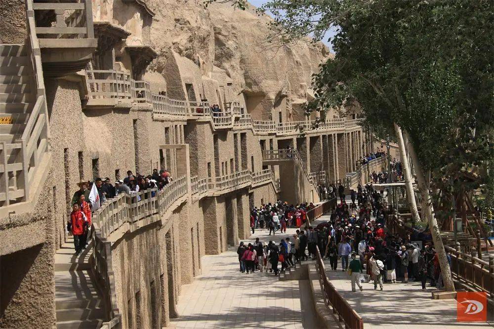 今年以来,敦煌市采取推出冬春旅游优惠政策、开展敦煌文化研学季活动、增开加密航线航班、加强旅游宣传促销等多项措施,吸引众多游客观光旅游,旅游接待人数创历史新高。据敦煌市文旅部门统计数据显示:今年前四个月,敦煌市莫高窟、鸣沙山月牙泉等六大景区共接待游客64.86万人,同比2019年增长43%,同比2022年增长480.88%。