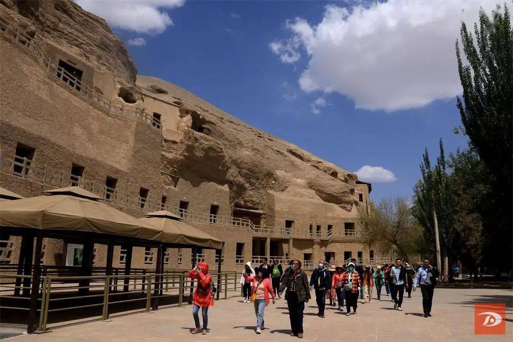 2023年5月11日,游客在敦煌市莫高窟景区游览。