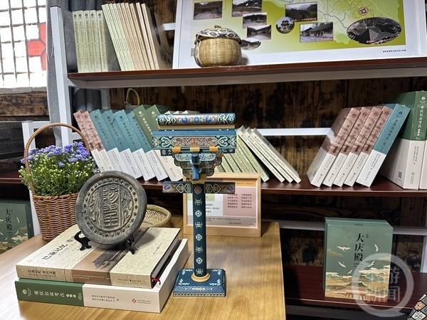 其中书吧的书架上摆满了重庆市文物考古研究院推出的《重庆公众考古》《你身边的考古故事》,以及《酉阳车田——土司遗产与民族文化》等考古书籍,游客随时可以翻阅。像宋式大斗拱积木等极富中国传统文化特色的文创摆件在整个民宿里也随处可见。