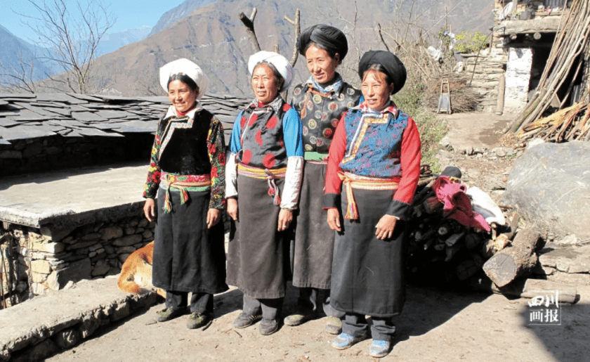 除了建筑,服饰上的特点也较为鲜明。东部的木涅传统服饰中,男女皆缠青色或白色的头帕,穿长衫,服饰有羌族、彝族的特点和痕迹。西部的木雅,服饰更趋于藏装,配饰华丽。木雅女性穿着的服饰被称为“巴果”,分为上装和下装。