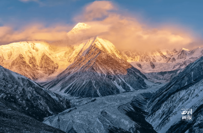 从贡嘎山西坡的大小贡巴冰川角度看,贡嘎山像一只展翅欲飞的雄鹰