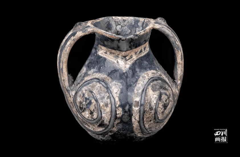 木雅地区西汉时期石棺葬文物:泥制黑陶双耳陶罐
