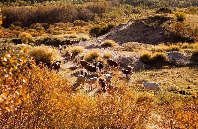 进入秋日里的御道口草原森林风景区,错落的林草时而变幻着色彩,金黄与棕色辉映、深绿与火红相间,色彩斑斓,被誉为“中国最美的秋天”。