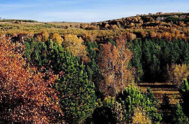 每逢秋季放眼望去,各类树木摇曳生姿,林木层层荡漾,像一片海洋,共同描绘一幅鲜艳欲滴、浓烈似火的金色画卷。