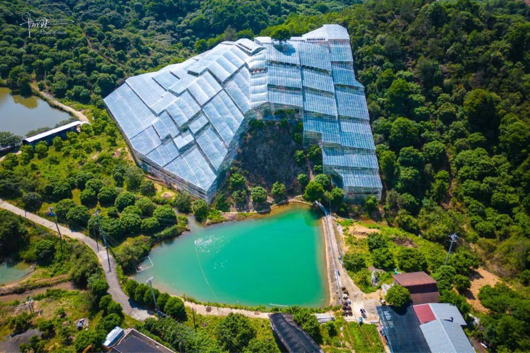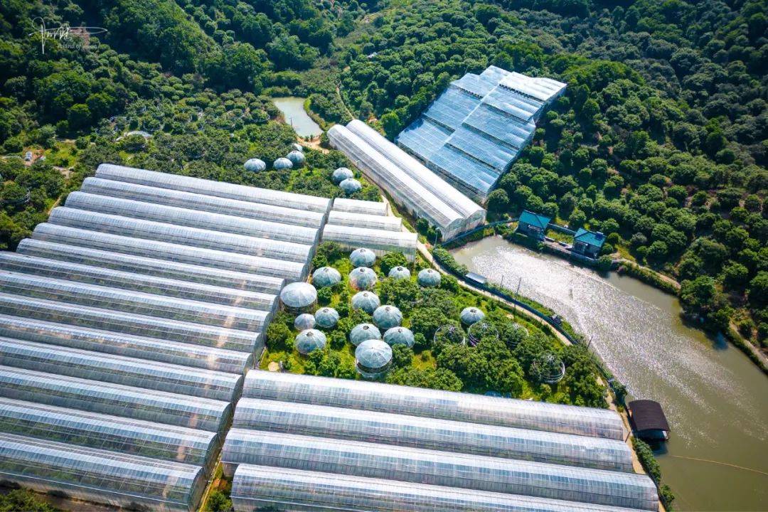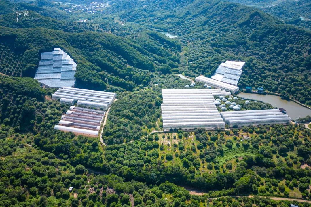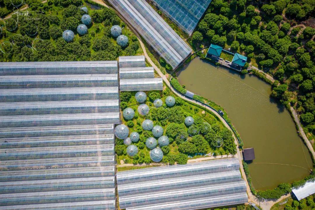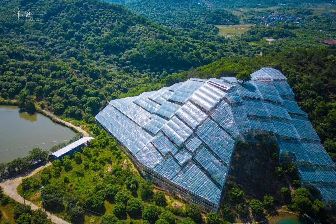 杨梅园的门口并没有人看管,可能需要提前预约或者只接待团队客户吧。但为了节省时间和避免去跟工作人员交流,我就还是用小飞机“代步”,“参观”了下这里别样风景。除了两大块依山势而建外,园区内还有许多条常见的条状大棚,俯瞰视角下,还是相当壮观的。