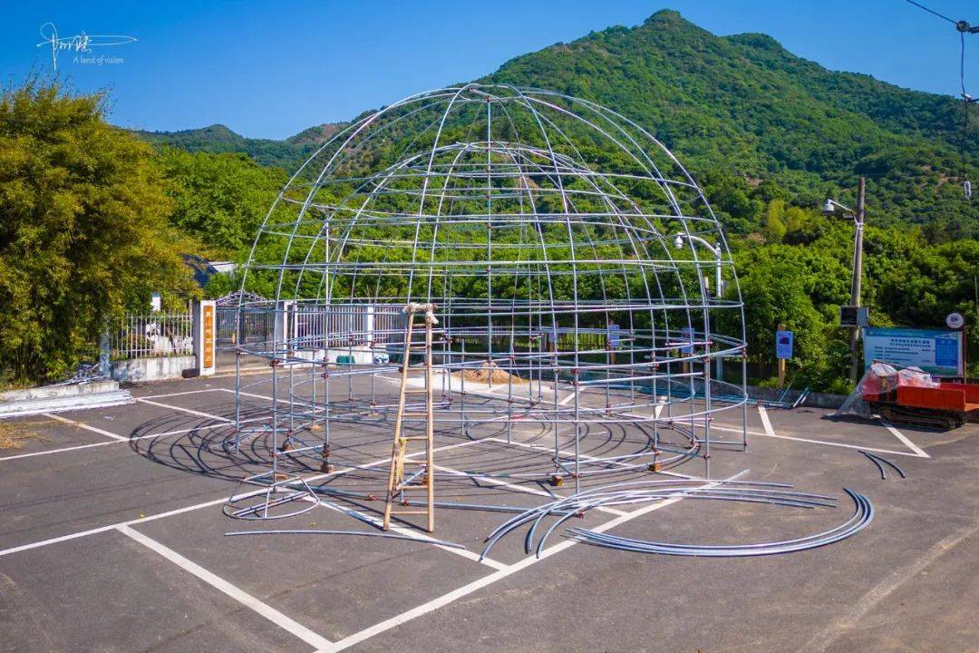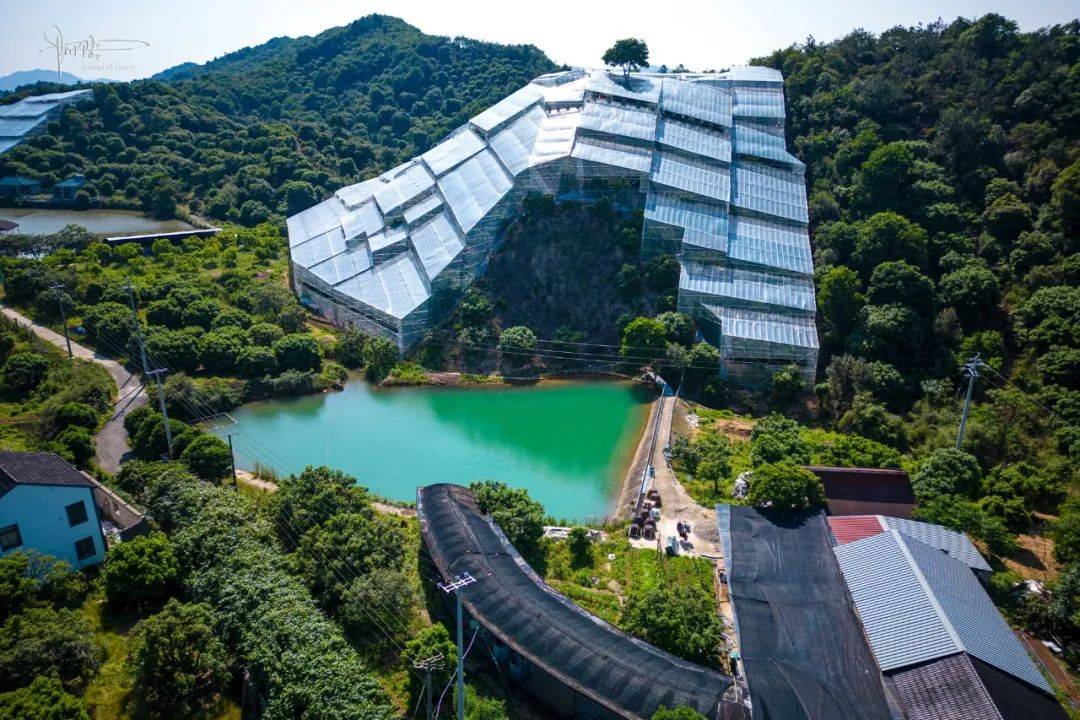 应该说是巧合,在前往绍兴之前,刚好在网上“刷”到临安有个塑料大棚突然走红的消息,未来感满满的“冰川”造型让人印象深刻。而其实这种大棚就是把以前杨梅里常见的结构简单的脚手支架“升级”,披上了科技感十足的透明“外衣”,据说总投入高达五六百万元。没想到在上虞萝岩山下也有类似的“建筑物”,且规模好像还要更大些。