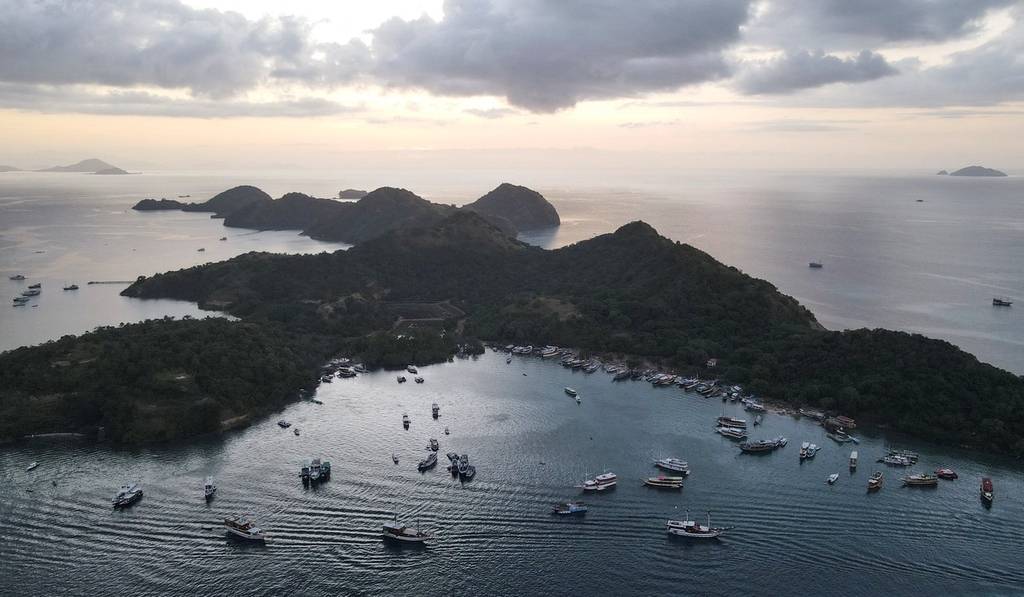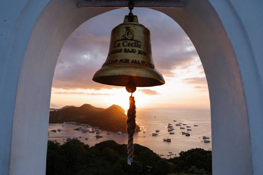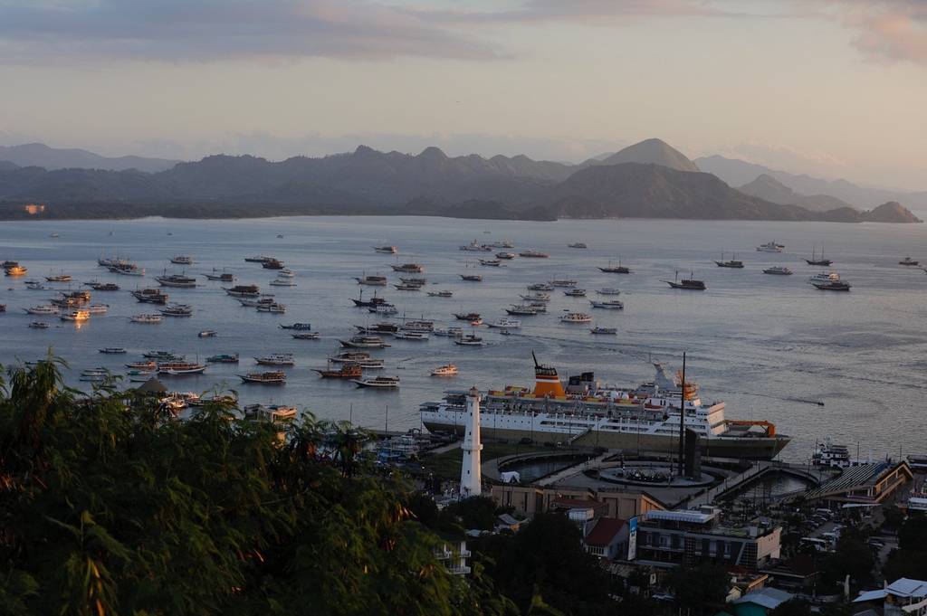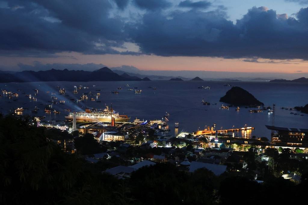 印尼东努沙登加拉省日落,纳闽巴霍港景观美如画卷。