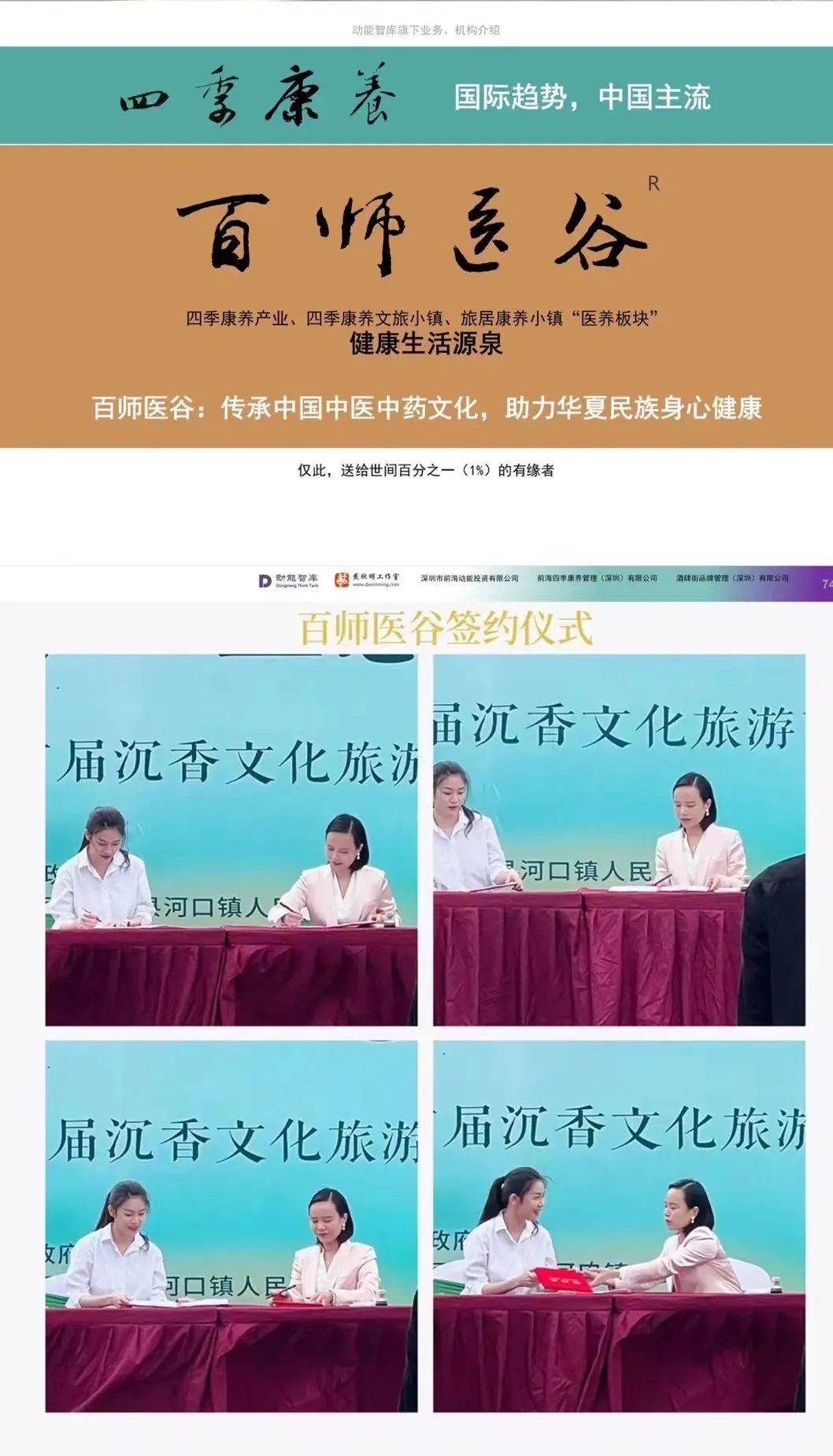 此外,动能智库副院长、深圳市前海动能投资有限公司总经理蔡恒儿代表动能智库·深圳市前海动能投资有限公司与广东香美农业科技有限公司现场签约“四季康养·百师医谷·沉香园”康养项目。百师医谷由动能智库·深圳市前海动能投资有限公司、前海四季康养管理(深圳)有限公司授权运营,引进名医名师,将全面赋能陆河河口沉香产业的升级。