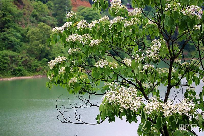 得益于清澈湖水的滋养,桐花开得愈发“精致”(央广网发 梁欣 摄)