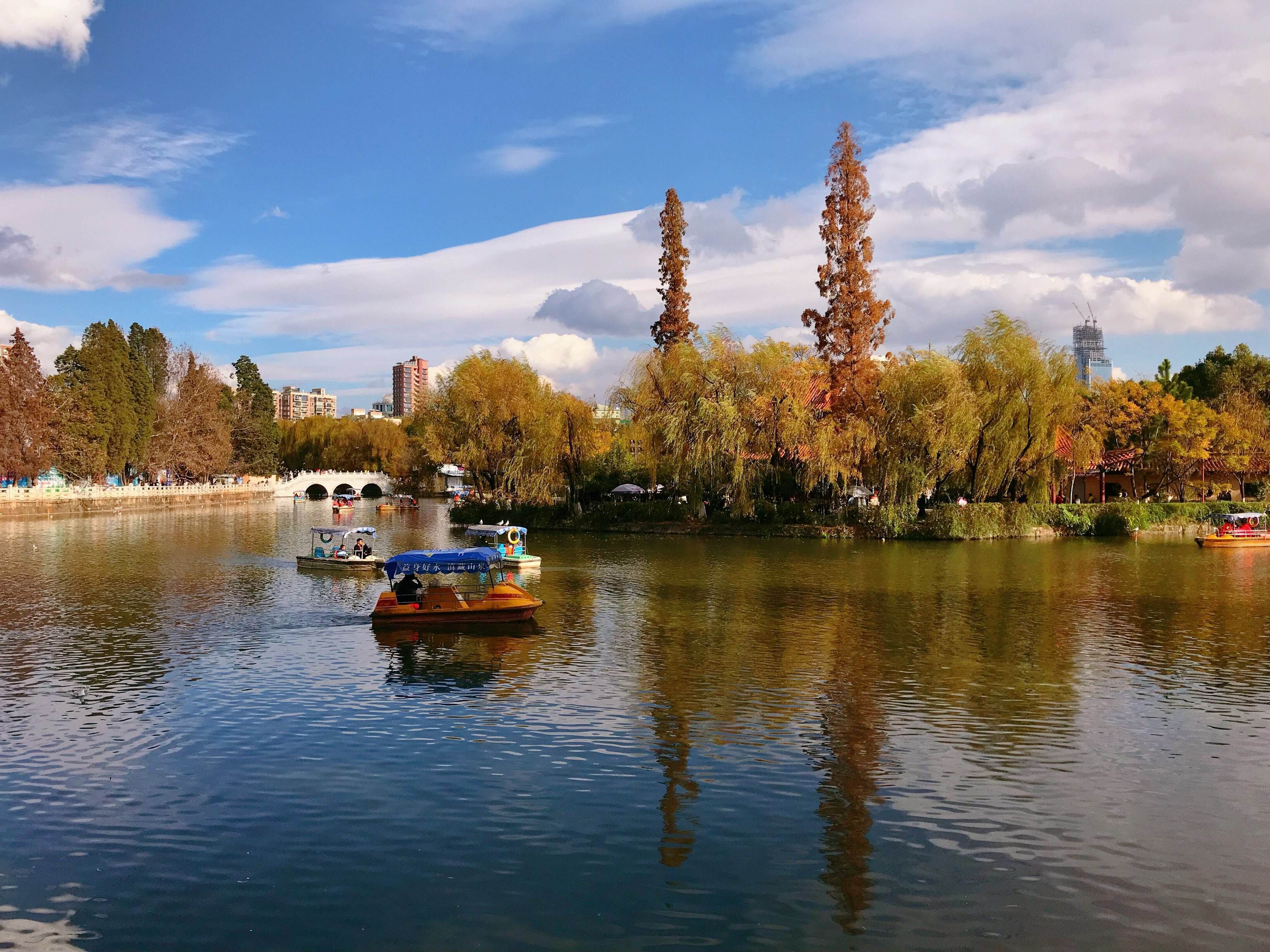 昆明有春城的美称,自然有着无数绝美的风景,一望无际的滇池水,落樱缤纷的圆通山樱花潮,冬日里西伯利亚飞来的“小精灵”红嘴鸥,云大的小松鼠,都给这座城市带来了许多色彩,让这里变得娴静温婉。你可以在春日里坐船游滇池,赏两岸绿树红花;也可以在炎热的夏季里看大观楼的荷塘月色;秋日里在云大的银杏道徜徉,喂松鼠;冬日里在昆明躲避北方的严寒,在滇池海埂大坝追寻海鸥的踪迹。