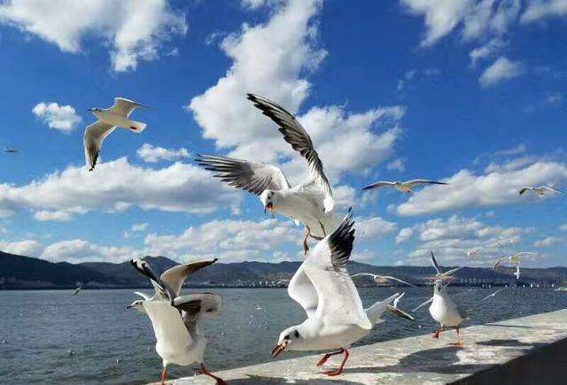 没到初春,昆明都会迎来一批自西伯利亚飞来越冬的红嘴鸥,这些可爱的小精灵们栖息在水边,盘桓于昆明的上空,他们会在人们眼前飞舞,偶尔还会来吃人类手里的食物,如果想近距离接触这些小家伙们,那就到滇池海埂大坝、海埂公园、翠湖、大观楼等地方去寻找它们的身影吧。