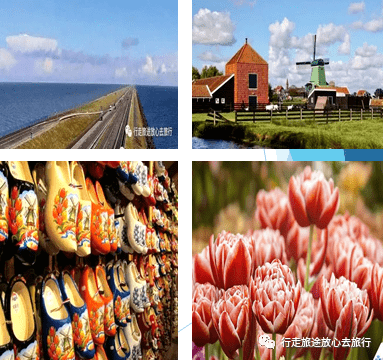 荷兰有四大标志性景观,被称为“荷兰四宝”:宏伟壮观的巴里尔大坝、700多年历史的古老风车、小巧玲珑的木鞋和千姿百态、姹紫嫣红的郁金香。