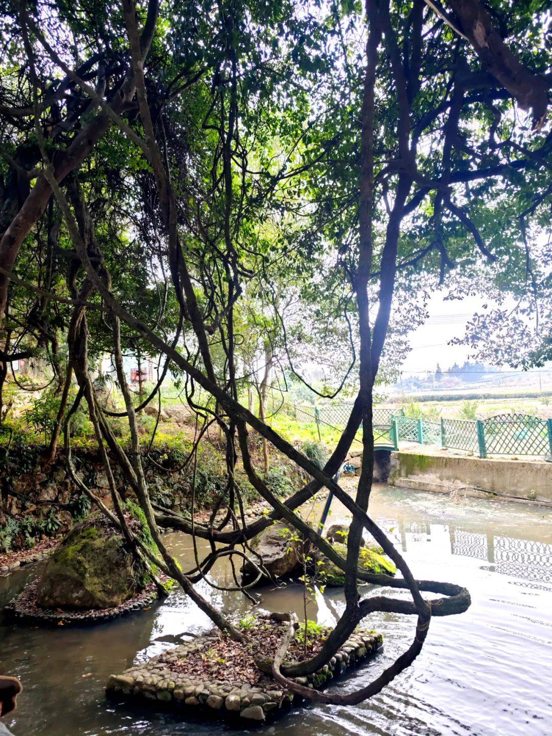 据《敖氏宗谱》记载,这株“美郎藤”诞生的年代与村庄的历史一样久远。在中国民间文化的象征符号,恋爱中的男女双方,女的是树,男的是藤。世上只见藤缠树,藤长情更长。这生机勃勃的“美郎藤”,或匍匐在地,或凌空飞跃,盘盘绕绕,百转千回,始终攀缘拥抱着绿树,表现出对爱情的执着,深沉和缠绵。“美郎藤”牵连着的两座对歌台,仿佛还回荡着青年男女对唱的歌声,自然长成的两颗心型藤蔓,似在诉说“心心相印”的爱情故事。