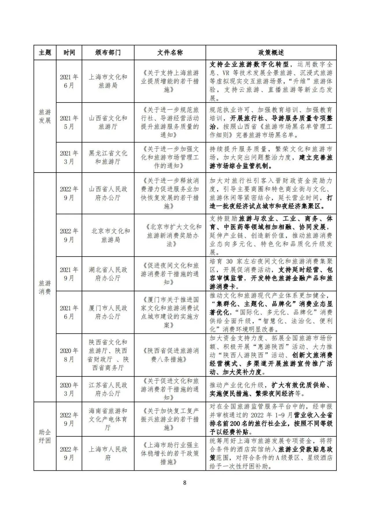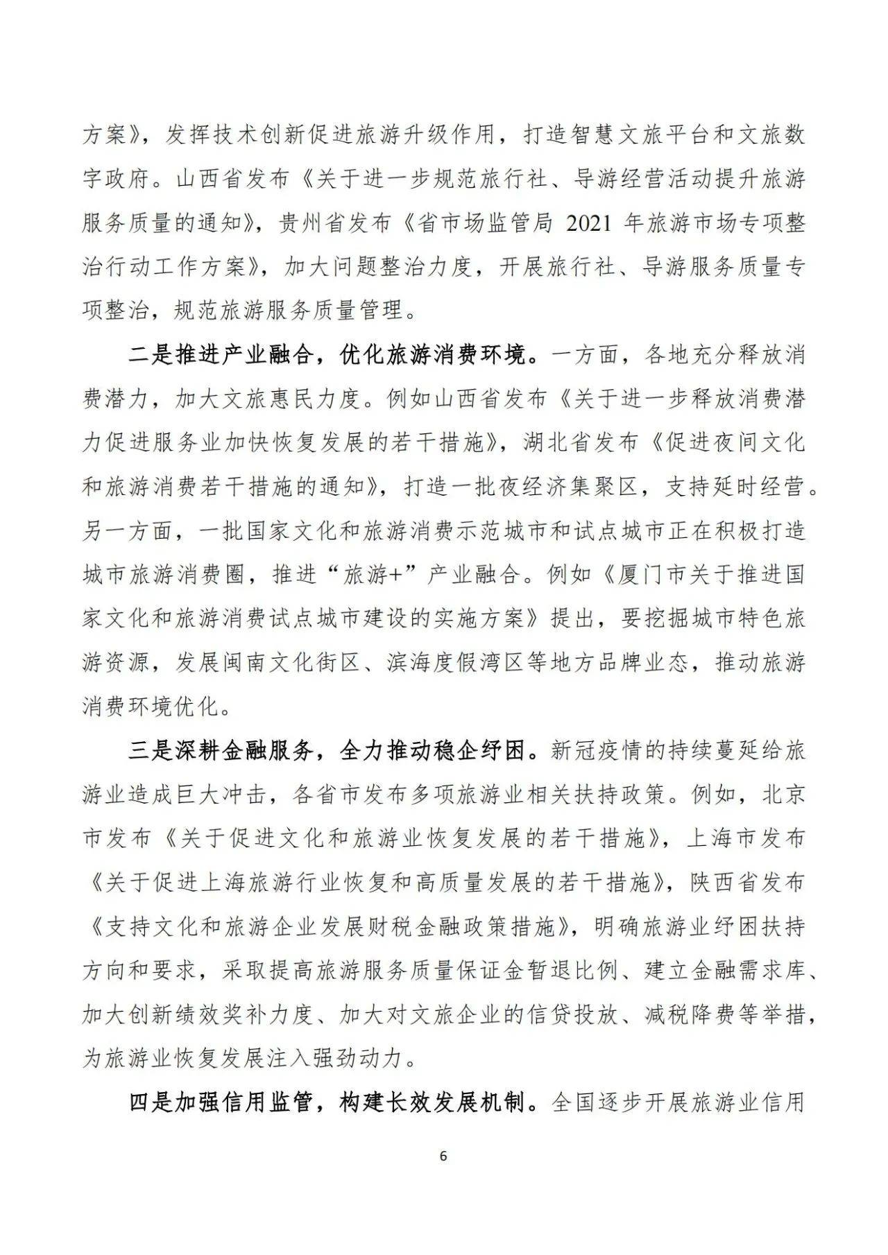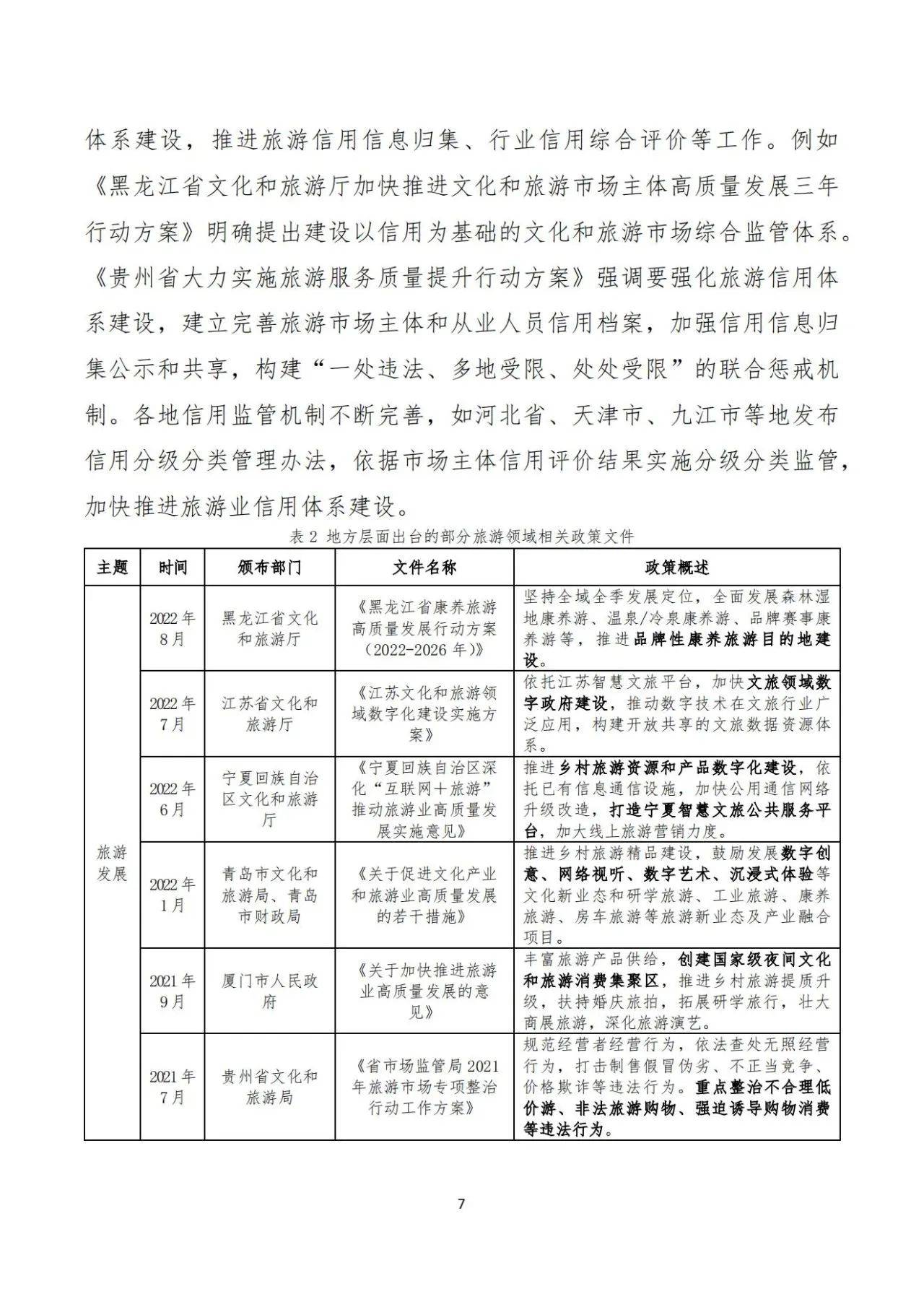 旅游业是凭借旅游资源和设施,专门或者主要从事招徕、接待游客、为其提供交通、游览、住宿、餐饮、购物、文娱等六个环节服务的综合性行业。根据《文化和旅游市场信用管理规定》,旅游市场主体包括从事旅行社经营服务、A 级旅游景区经营服务、旅游住宿经营服务、在线旅游经营服务的法人或者其他组织;从业人员包括上述市场主体的法定代表人、主要负责人、实际控制人以及导游等有关人员。