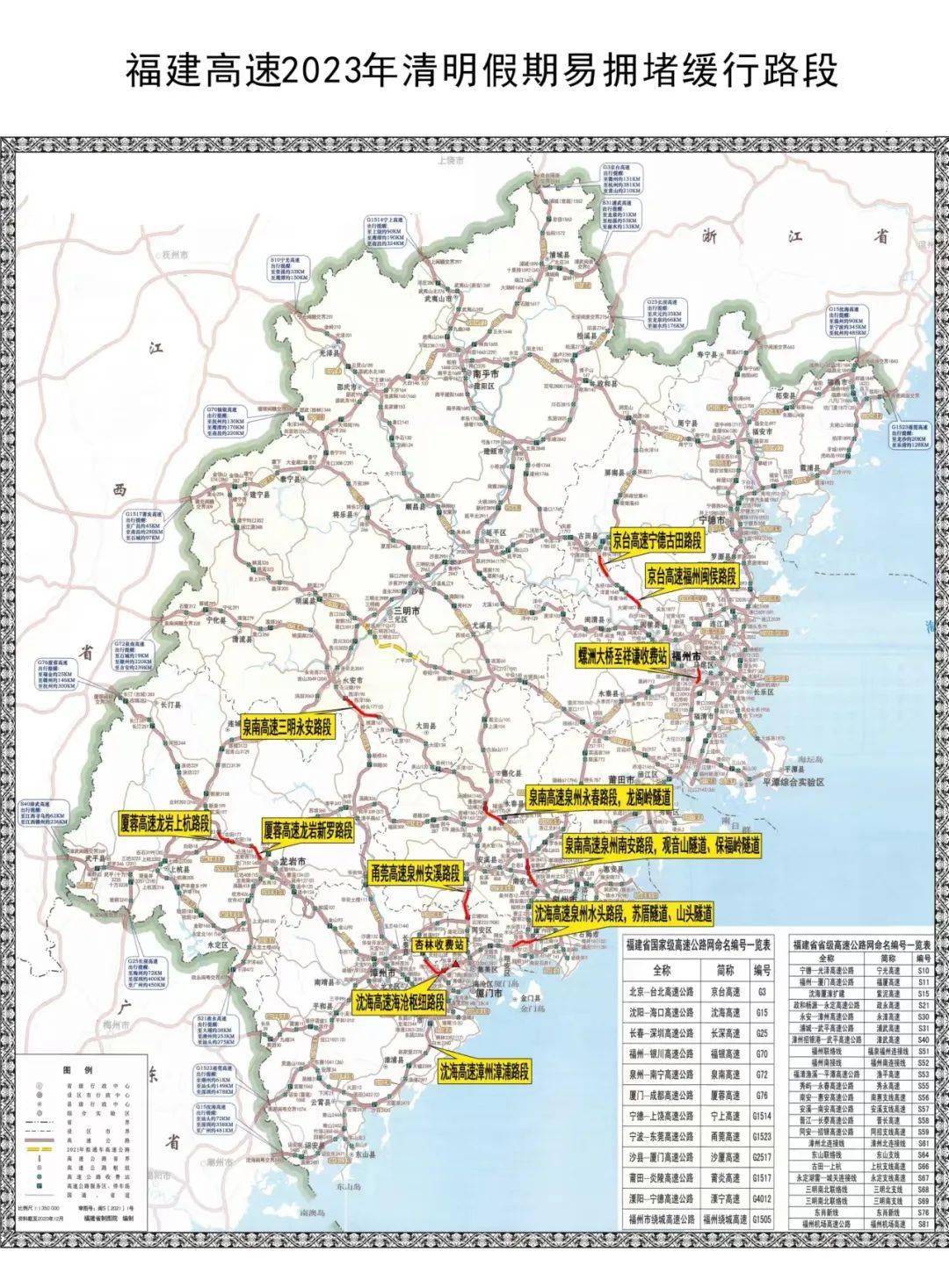 2023年清明假期福建省高速公路易拥堵路段(13个)