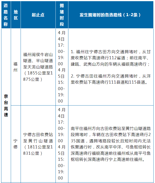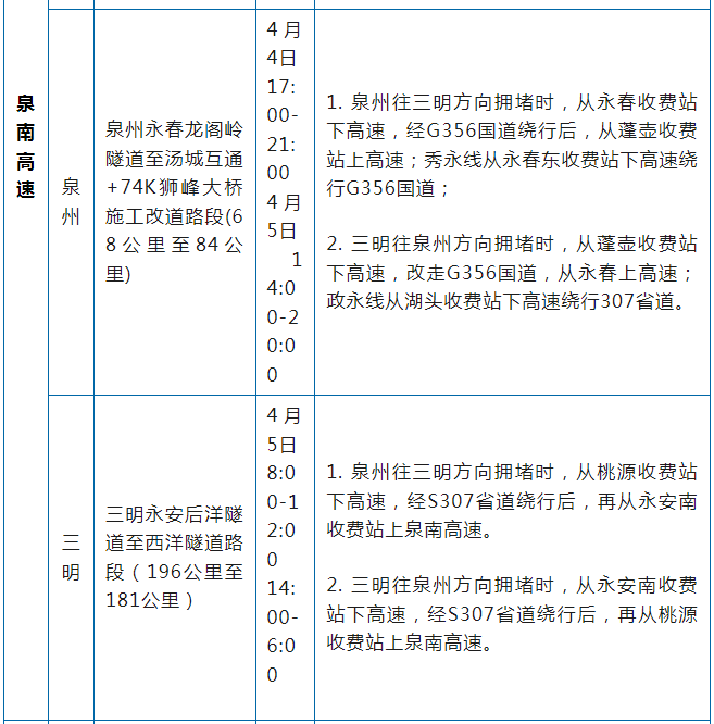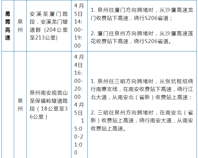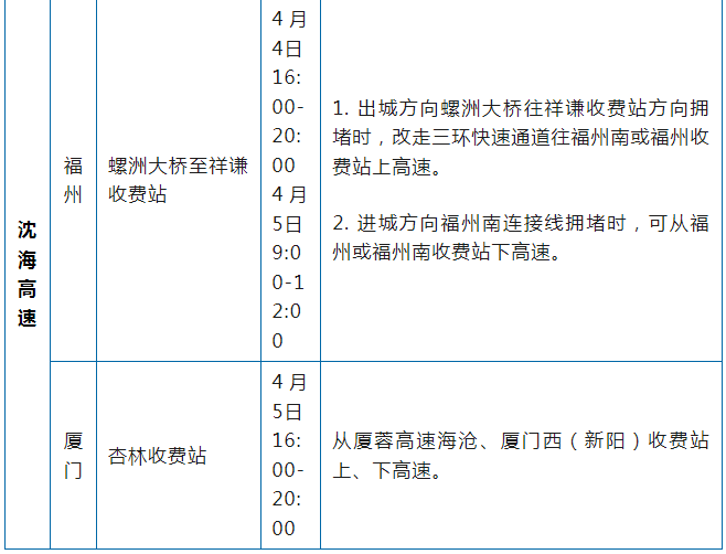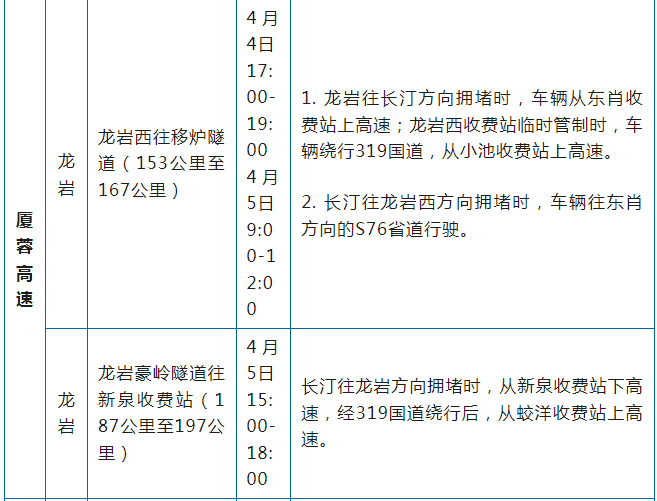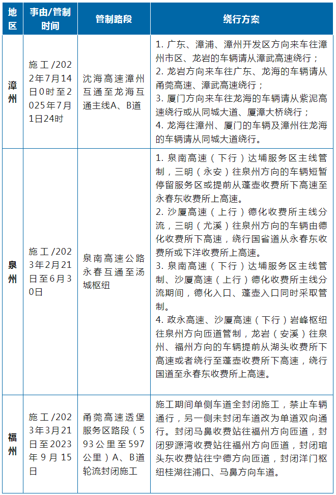 福建高速公路管制信息汇总表