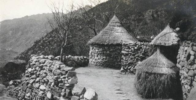 照片中是庐山地区山中的一处居民区,图中是一处小屋子,用来存放货物或是居住之用。这些照片,十分珍贵,让我们看到了另一个庐山的容颜。淳朴自然,虽然照片全是黑白的,但仍能从中看到最原始的美。
